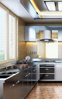 生產(chǎn)不銹鋼整體櫥柜時,要考慮電器、環(huán)境等因素。一起使用的抽油煙機、微波爐、烤箱,無論顏色、大小、風(fēng)格,都與櫥柜相搭配、相匹配。